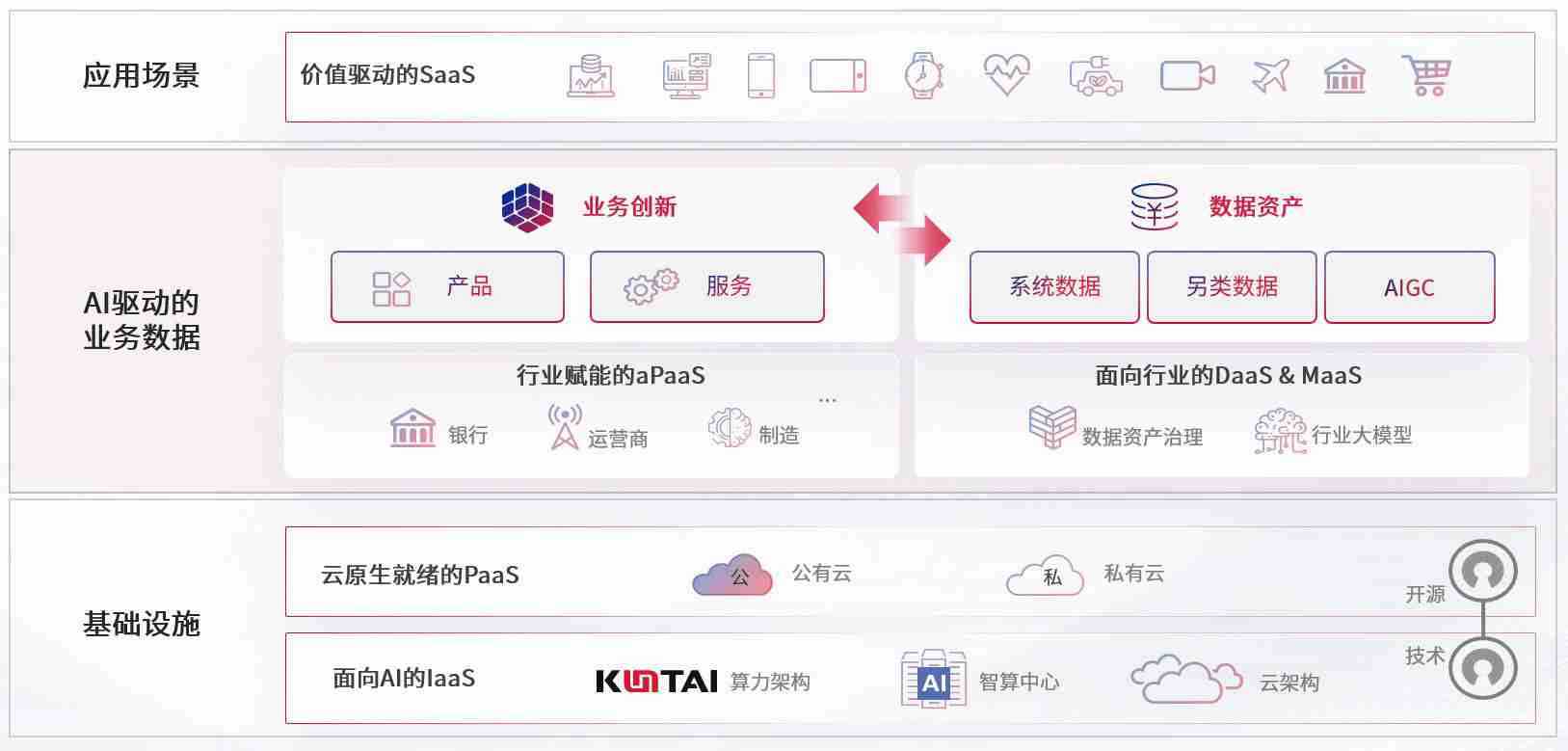 数字时代,,围绕企业数字化转型的关键要素,,,PG数码开创性的提出数云融合战略和技术体系框架,,着力在云原生、、、数字原生、、、、AI原生和信创产业上架构产品和服务能力,,,为处在不同数字化转型阶段的快消零售、、、汽车、、、、金融、、、、医疗、、、、政企、、教育、、、、运营商等行业客户提供泛在的敏捷IT能力和融合的数据驱动能力,,,构建跨界融合创新的数字业务场景和新业务模式,,助力企业级客户建立面向未来的核心能力和竞争优势,,,全面推动社会的数字化、、智能化转型升级。。。